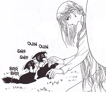 Alors que Jade poursuit en tête à tête avec Ambre ses explications, les deux soeurs en profiteront pour se métamorphoser en chat et aller se faire câliner sur les genoux de Shûichirô.