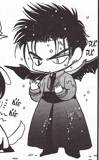 Pourtant il est tout de même possible de le voir en miniature dans un des journaux des CLAMP de fin de volume au Volume 3, "Journal de Clamp n°3 : Aujourd'hui Jade vient nous rendre visite!" (Nouvelle édition : Journal Clamp édition pirate III : Jour de la visite de Hisui). Il est alors aspergé de potion qui réduit les anges et apparaît sous une forme chibi et mignonne de lui-même.