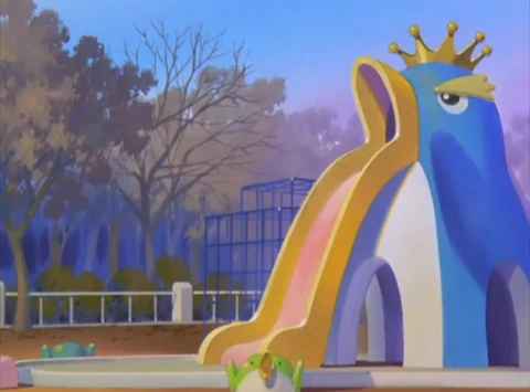 On retrouve souvent la figure du pingouin dans les œuvres des CLAMP, et bien sûr celui de ce parc n'est pas sans rappeler l'une de leur plus ancienne mascotte, Minami.