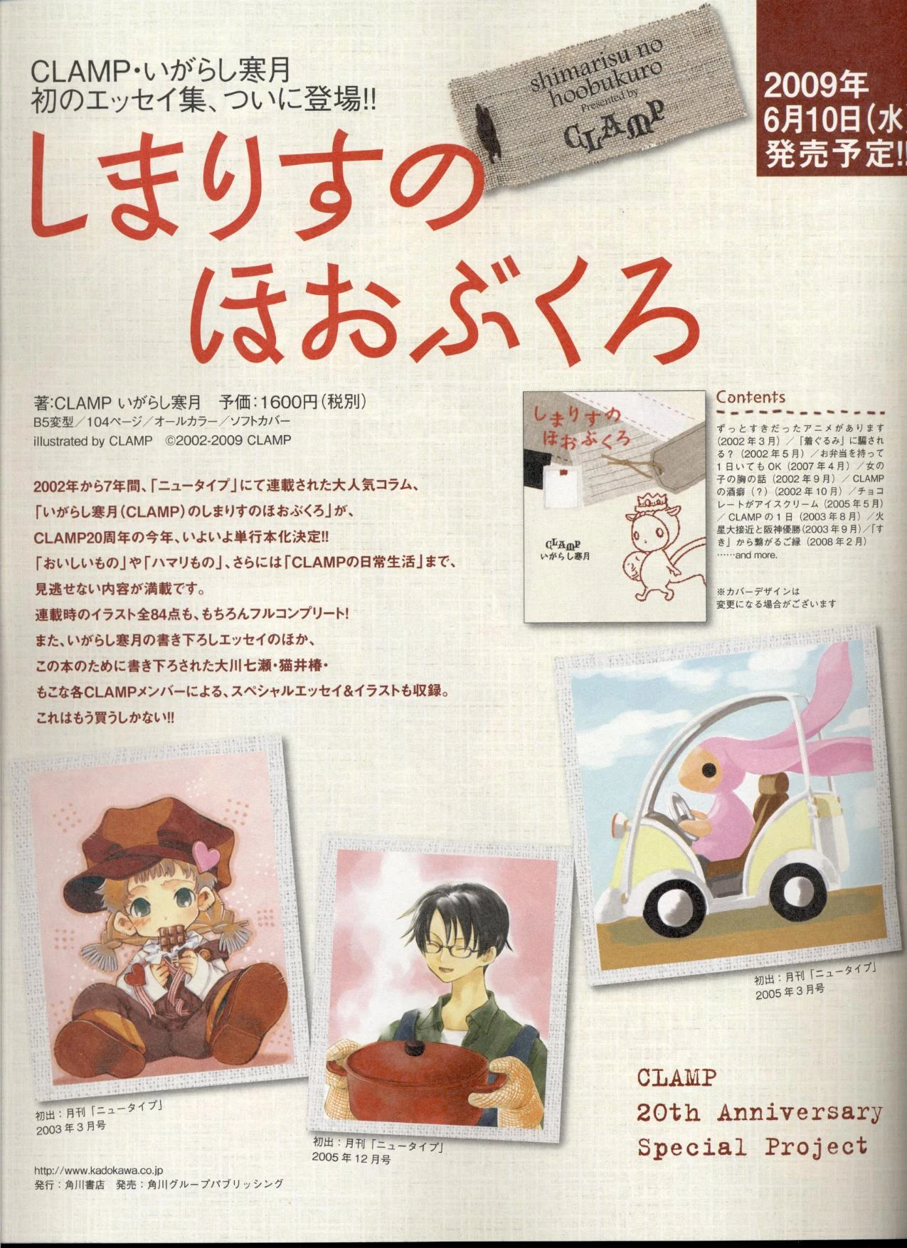 Le livre rassemble aussi les illustrations de ses essais et nouvelles, réalisées par les membres de CLAMP, et en plus quelques écrits inédit.