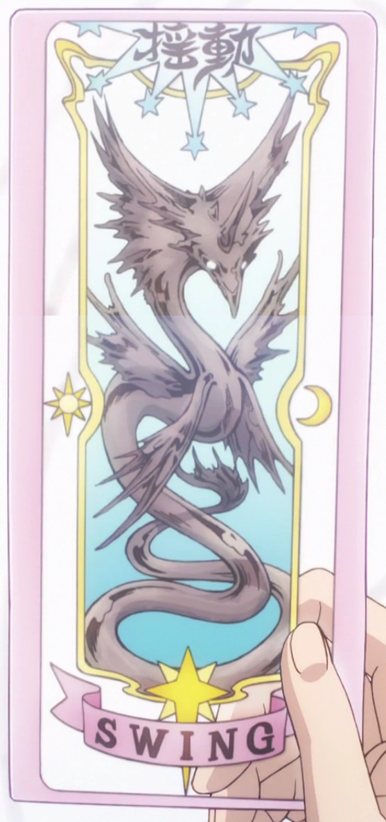 La carte Swing à l'apparence d'un dragon au corps long serpentaire dont la queue se finit en toupet. Il a quatre sorte d'ailes/nageoires au niveau du buste, et sa tête rappelle un peu celle d'un rapace avec son bec. Il a une grande corne au niveau du front qui fait que son apparence n'est pas sans rappeler celle du dragon qui hante les rêves de Sakura.